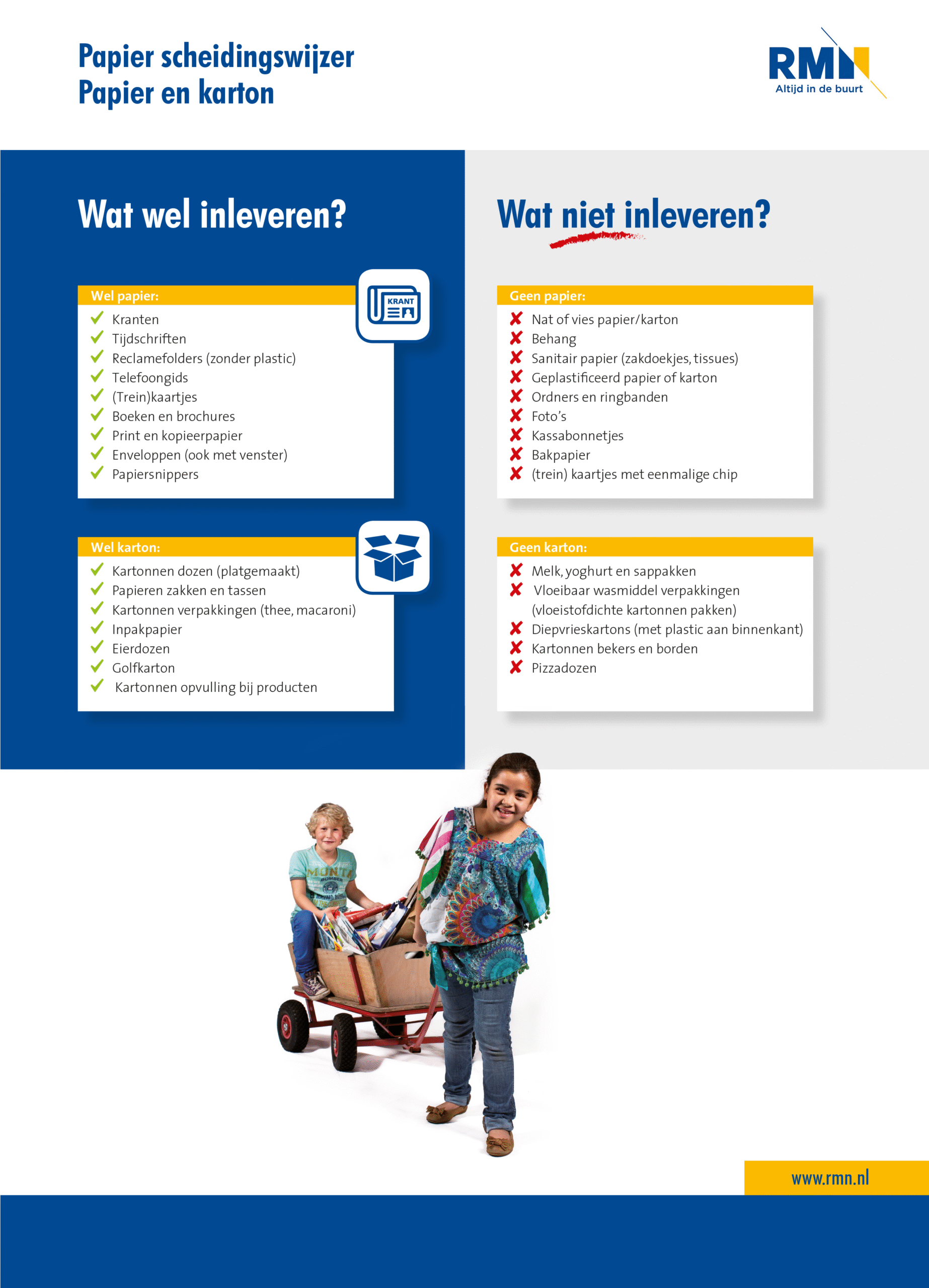 Download dan de gratis RMN app. In deze app zit de Afvalwegwijzer waar u in één oogopslag per product kunt zien in welke kliko wat hoort. Zo wordt het scheiden van grondstoffen nog gemakkelijker.